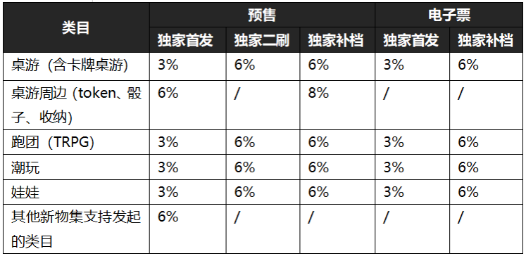 *表格【/】表示不支持发起该售卖模式,并非“0”费率。